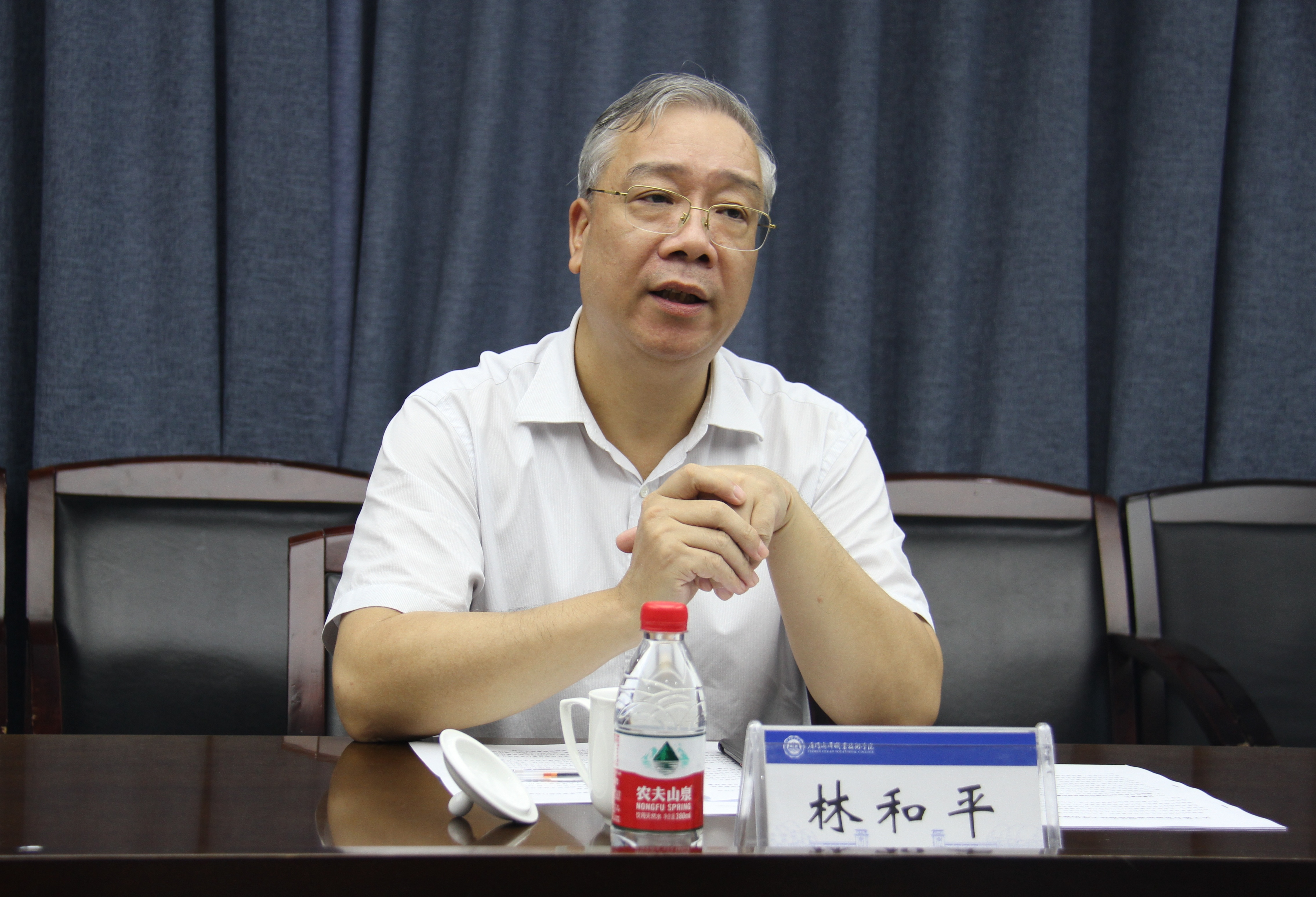 林和平指出,学校办学有历史、有积淀、有特色、有潜力。值此百年校庆即将到来之际,翔安校区校园建设美化力度大,能够让广大校友看到希望和前景。他强调,新时代对高等教育的重视前所未有,要紧紧抓住国家大力发展职业教育的历史机遇,充分发挥党在办学治校过程中对教育的全面领导,落实立德树人根本任务,大力推动学校发展。学校要站在新的起点上,将回顾总结办学经验与科学谋划十四五规划结合起来,一是推动建立能力导向、产业背景、服务社会的人才培养体系,培养更多符合经济社会发展需要的技术技能型人才。二是认真总结凝练嘉庚精神、梳理百年办学经验,谋划好十四五发展方向,用共识推进共为。三是进一步打造海洋文化,完善校园环境布置,让学生时刻接受熏陶教育。他对学校现任领导班子寄予厚望,特别指出,恰逢新时代之期的百年校庆,对班子来说,既是机遇又是使命。全体班子成员要讲担当、有作为,牢固树立大局意识,着眼学校长远发展,进一步凝聚全校奋进力量,立足于融入厦门发展、服务厦门发展、依靠厦门发展,为海洋强省、海洋强国战略做出更大贡献。