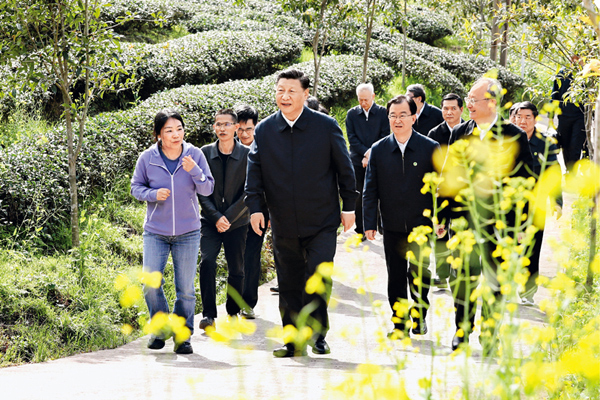 2021年3月22日至25日,中共中央总书记、国家主席、中央军委主席习近平在福建考察。这是22日下午,习近平在南平武夷山市星村镇燕子窠生态茶园,察看春茶长势,了解当地茶产业发展情况。 新华社记者 鞠鹏/摄